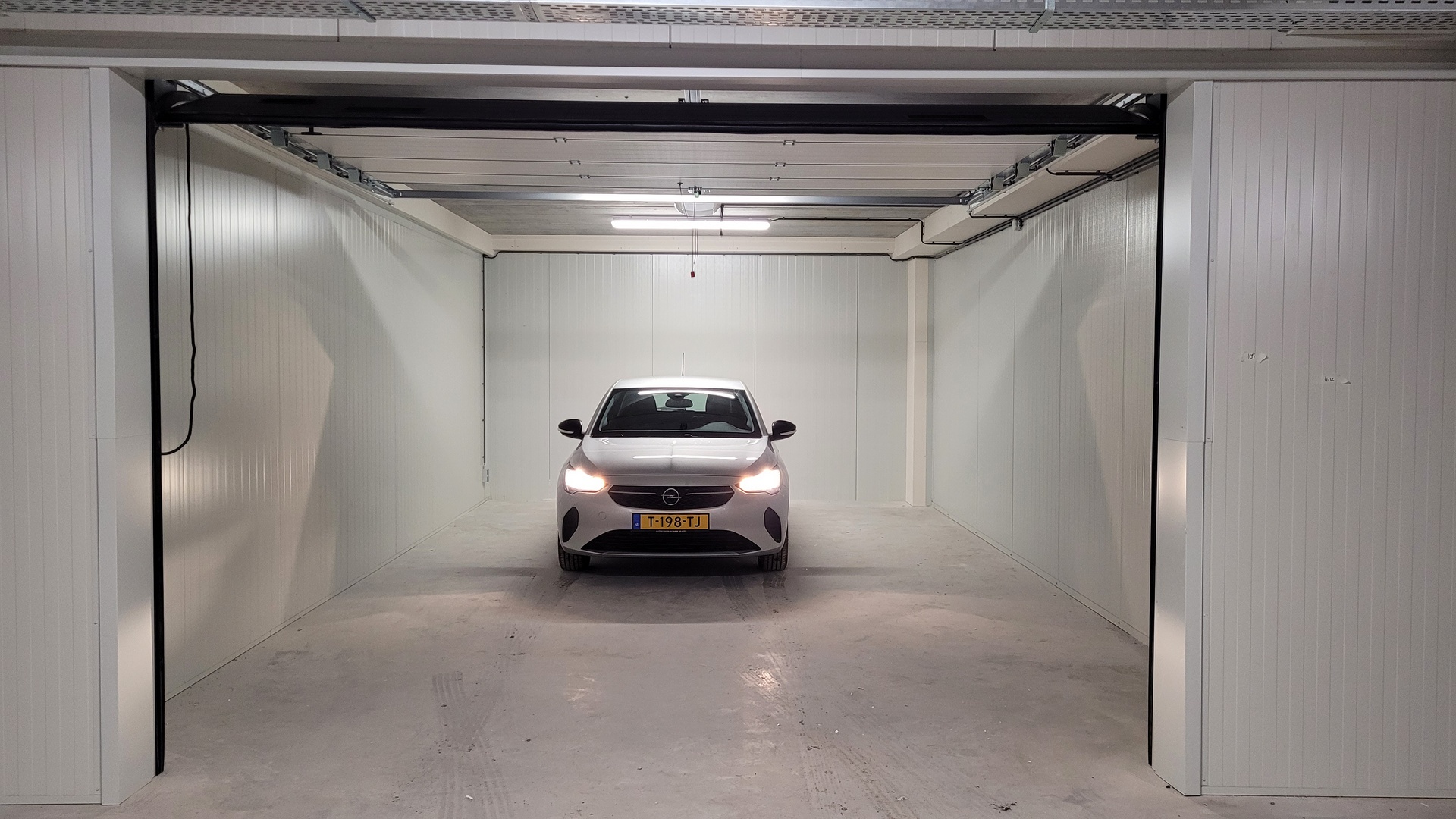 Toegang tot de box middels een met afstand bedienbare elektrische overhead deur (hoogte c.a 3.20 m).