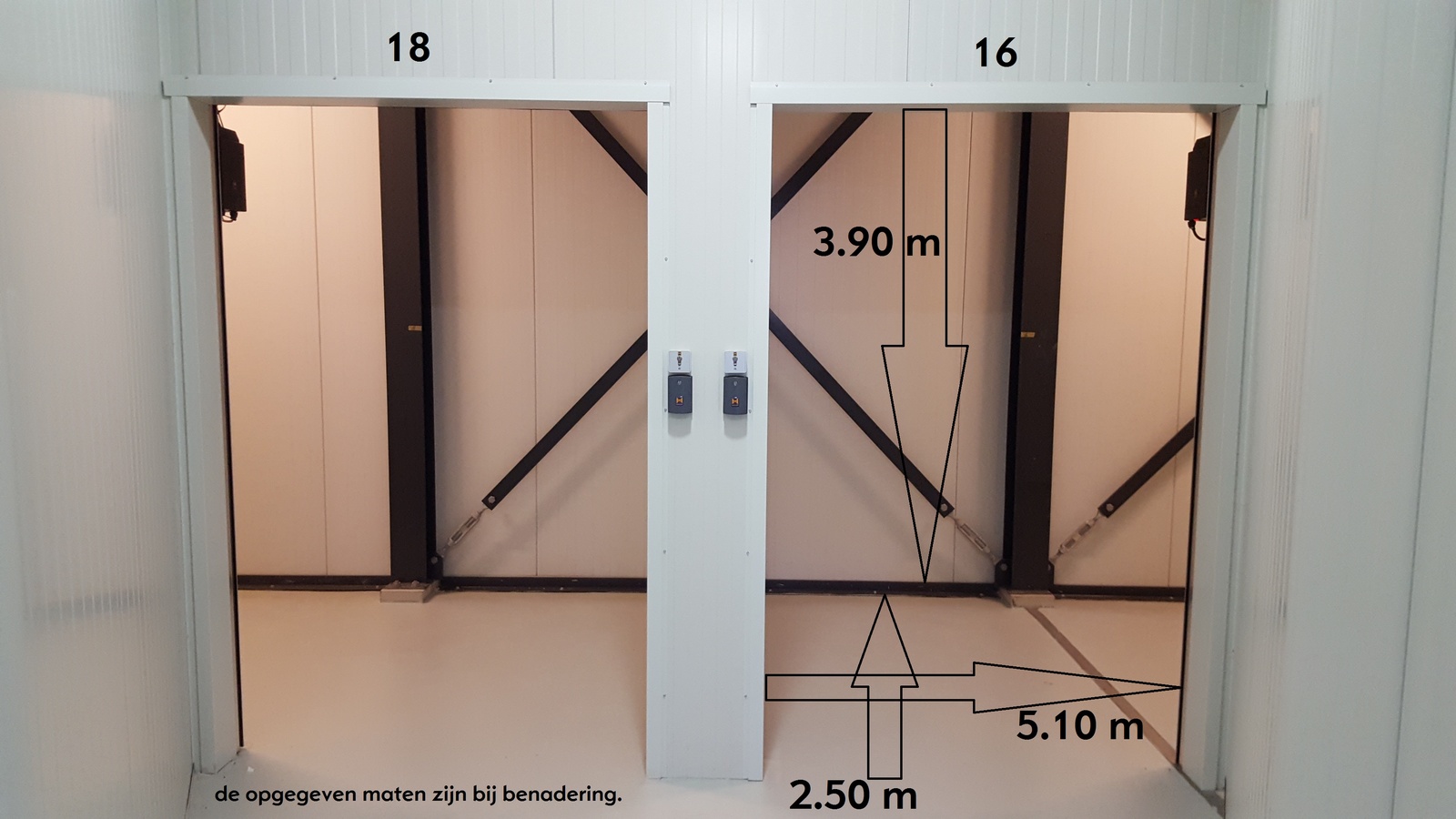 De opslagboxen nr. 16 en 18 ook gelegen in het complex 'Box Garages Zaandam'. De boxen hebben een oppervlakte van ca. 13 m² per box.
